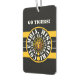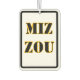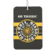 Car Air Freshener black and white with black, white and gold concentric-circles design with "COLUMBIA, MISSOURI CENTER OF THE UNIVERSE" with "GO AHEAD YOU CAN DO IT" above black, white and gold horizontal lines, with Y-NOT-ME logo in the centre, and with MIZZOU on the back.