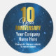 A bold and striking 10th anniversary sticker to commemorate 10 years in business. This special milestone company sticker consists of the typography '10 Year anniversary' on a blue space background. Add a company name and message.