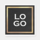 This professional custom napkin features a black background with a sample company or business logo placed in the centre. A gold foil style frame borders the napkin. You can personalize it to add your own company, organization, or business logo, or other custom image.