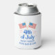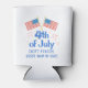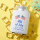 A patriotic red, white, and blue stars and stripes, American flag design. Corporate July 4th Party Can Coolers. Add company/name and year.