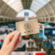 Modern name badge with your company or organization's logo against a brushed gold faux metallic background. Add a name and title in simple typography.