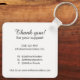This custom keychain is more than just a token of appreciation; it's a powerful tool for your business. Crafted with care and featuring your logo, it's the perfect thank you giveaway for your valued customers. The keychain includes essential contact information, so customers can easily get in touch, and a QR code to lead them directly to your website. Stay connected with your audience through social media links.