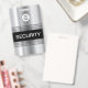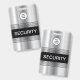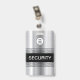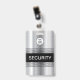 Cool modern security staff badges designed with a digitally printed silver metallic look background that mimics the look of brushed metal and logo template you can replace with your company logo and the word Security printed with the design displayed on both sides. A modern take on company security in a budget friendly design.