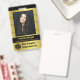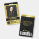 These photo ID badges have a gold-and-black colour theme. They include your employee's photo, name, and job title on the front, plus the name of the corporation / company and business logo. The back includes room for "if found" information (including address and phone number), plus space for an ID number and a bar code. The design also includes a grid pattern background and a line graph theme. Use the easy template to personalize, and then use the design tool to make more detailed changes (such as adjusting the size of the logo or barcode or deleting and rearranging elements). This eye-catching design is perfect for an office manager, administrative assistant, executive, or any business employee.