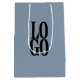 Company or Business Custom Logo on Dusty Blue Medium Gift Bag