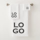 This simple yet sophisticated towel and washcloth set features a solid white background with a sample company of business logo placed in the centre. You can personalize the towels and cloth to your own custom company or business logo.