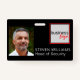 Photo identification security badge for a company or business. This template design allows you to create your own unique badge. You can put in your own photo image or that of your employees, as well as custom name and role or job title. There is also space to put in your own square company logo.
