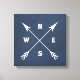 Compass illustration with arrows and north, east, south, west decoration on blue grunge background