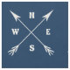 Compass illustration with arrows and north, east, south, west decoration on blue background