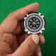This nautical design represents "Vegvisir," which is an ancient Viking term for "direction sign" or "see the way." This compass pendant helps prevent you from getting lost. It is a "brun rune" or sea charm. This poker chip would make a lovely gift for a Mariner, sailor or nautical person.