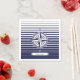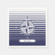 A nautical design with an ornate compass rose on blue and white stripes and a label with customizable text.
