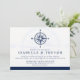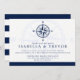 Classy yet modern nautical themed length-wise nautical wedding invites. The invites feature a nautical compass rose in a vintage style with the names of the bride and groom underneath it In addition to the wedding details. Faded in the background is a vintage compass rose used in sailing. On the reverse side are navy and white stripes to complete the uniform look. All elements of this item are adjustable by using the customization function. Enjoy creating and making it your own.