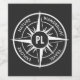 Compass star in black and white with emblems wanderlust, nature, travel and explore that are customizable so you can write your own texts. In the centre of the star is a personalized monogram. Perfect for nature lovers hikers and travellers.