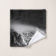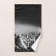 Compass star with black and white photograph of dramatic snowy mountains with milky clouds. With emblems wanderlust, nature, travel and explore that are customizable so you can write your own texts. In the centre of the star is a personalized monogram. Perfect for nature lovers hikers and travellers.