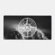 Compass star with black and white photograph of dramatic snowy mountains with milky clouds. With emblems wanderlust, nature, travel and explore that are customizable so you can write your own texts. In the centre of the star is a personalized monogram. Perfect for nature lovers hikers and travellers.