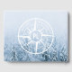 Compass star with a photo of a fog in a frosty winter spruce forest with emblems wanderlust, nature, travel and explore that are customizable so you can write your own texts. In the centre of the star is a personalized monogram. Perfect for nature lovers hikers and travellers.
