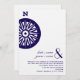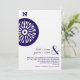 A simple wedding invitation featuring an image of a compass at left. Personalize the matching navy blue text at bottom right with details of your occasion.