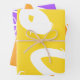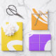 This set of three wrapping papers is made up of a system of white artistic spots and lines that draw the surfaces in yellow, orange and lavender, each in their own way.