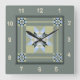 Complex Star Patch Quilt Block in Greens Square Wall Clock