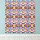 A symmetrical pattern bursts with vibrant colours and intricate geometrical shapes. The repetitive design features hues of blue, orange, pink, and red, creating a kaleidoscopic effect.
