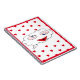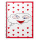 Take a moment to write down your memorable moments, your thoughts or your favourite recipes in you brand new writing journal. The journal is covered in red hearts with a face that can only be described as whimsical.