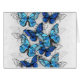 Vertical composition of realistic, blue and white morpho butterflies on grey textured background. Morpho blue butterfly.