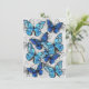 Vertical composition of realistic, blue and white morpho butterflies on grey textured background. Morpho blue butterfly.