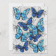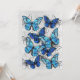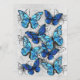 Vertical composition of realistic, blue and white morpho butterflies on grey textured background. Morpho blue butterfly.