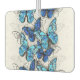 Vertical composition of realistic, blue and white morpho butterflies on grey textured background. Morpho blue butterfly.