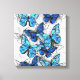 Vertical composition of realistic, blue and white morpho butterflies on gray textured background. Morpho blue butterfly.