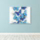 Vertical composition of realistic, blue and white morpho butterflies on grey textured background. Morpho blue butterfly.