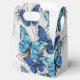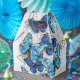 Vertical composition of realistic, blue and white morpho butterflies on grey textured background. Morpho blue butterfly.