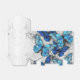 Vertical composition of realistic, blue and white morpho butterflies on grey textured background. Morpho blue butterfly.