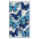 Vertical composition of realistic, blue and white morpho butterflies on grey textured background. Morpho blue butterfly.