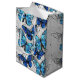 Vertical composition of realistic, blue and white morpho butterflies on grey textured background. Morpho blue butterfly.