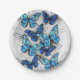 Vertical composition of realistic, blue and white morpho butterflies on grey textured background. Morpho blue butterfly.