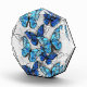 Vertical composition of realistic, blue and white morpho butterflies on grey textured background. Morpho blue butterfly.