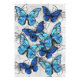 Vertical composition of realistic, blue and white morpho butterflies on grey textured background. Morpho blue butterfly.