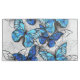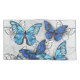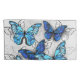 Vertical composition of realistic, blue and white morpho butterflies on grey textured background. Morpho blue butterfly.