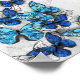 Vertical composition of realistic, blue and white morpho butterflies on grey textured background. Morpho blue butterfly.