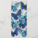 Vertical composition of realistic, blue and white morpho butterflies on grey textured background. Morpho blue butterfly.