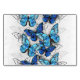 Vertical composition of realistic, blue and white morpho butterflies on grey textured background. Morpho blue butterfly.