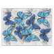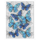 Vertical composition of realistic, blue and white morpho butterflies on grey textured background. Morpho blue butterfly.