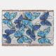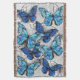 Vertical composition of realistic, blue and white morpho butterflies on grey textured background. Morpho blue butterfly.