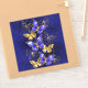 Composition of luxurious sapphire and gold jewellery butterflies on blue textured background.