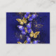 Composition of luxurious sapphire and gold jewellery butterflies on blue textured background.