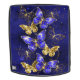 Composition of luxurious sapphire and gold jewellery butterflies on blue textured background.