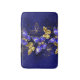 Composition of luxurious sapphire and gold jewellery butterflies on blue textured background.