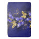 Composition of luxurious sapphire and gold jewellery butterflies on blue textured background.