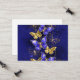 Composition of luxurious sapphire and gold jewellery butterflies on blue textured background.